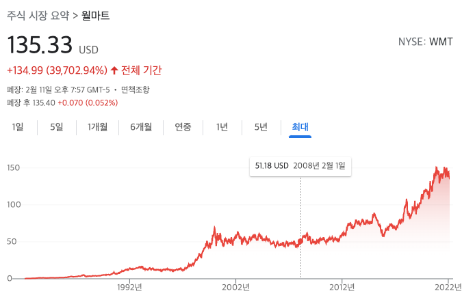 월마트의 기업공개(IPO)에서 100주를 구매한 투자자는 추가 구매 없이 향후 30년 동안 해당 지분이 204,800주로 증가하는 것을 보았을 것입니다.