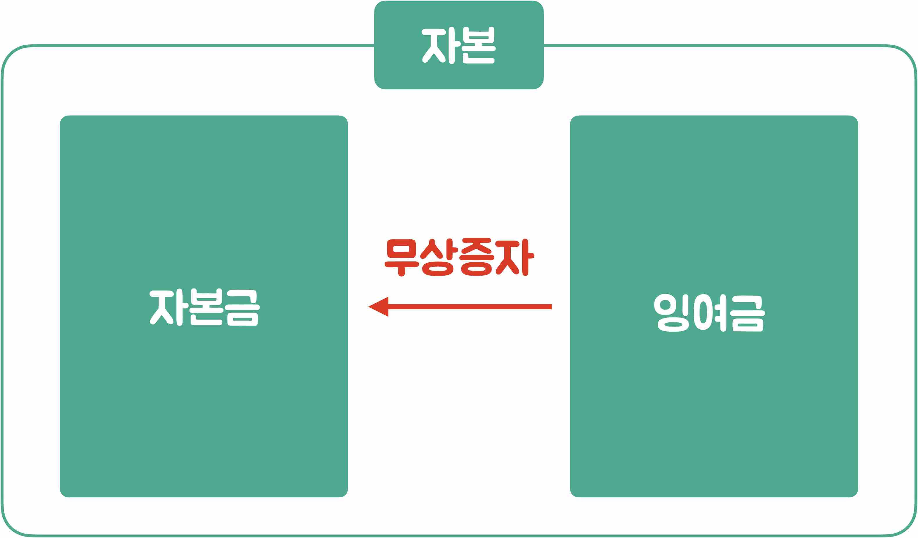 여기서 잉여금 계정에 있는 돈을 자본금으로 옮기는 것이 무상증자입니다.